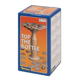 Die Flasche in der Mitte, die Spielchips im Beutel und los geht’s. Wer schafft es seine Spielchips auf der Flasche zu platzieren, ohne dass welche herunterfallen? Denn die Spielchips dürfen nicht deckungsgleich auf einen anderen gestapelt werden und ab der achten Ebene nur noch in die Breite. Jeden heruntergefallen Spielchip muss der verursachende Spieler in seinen Vorrat aufnehmen. Das Spiel ist beendet, wenn der Beutel leer ist. Gewinner ist, wer die wenigsten Spielchips in seinem Vorrat hat. Für noch mehr Spannung im Spiel sorgt die zweite Spielvariante. Hierbei müssen die Spieler die Aufgaben erfüllen, die ihnen der Aktionswürfel vorgibt.